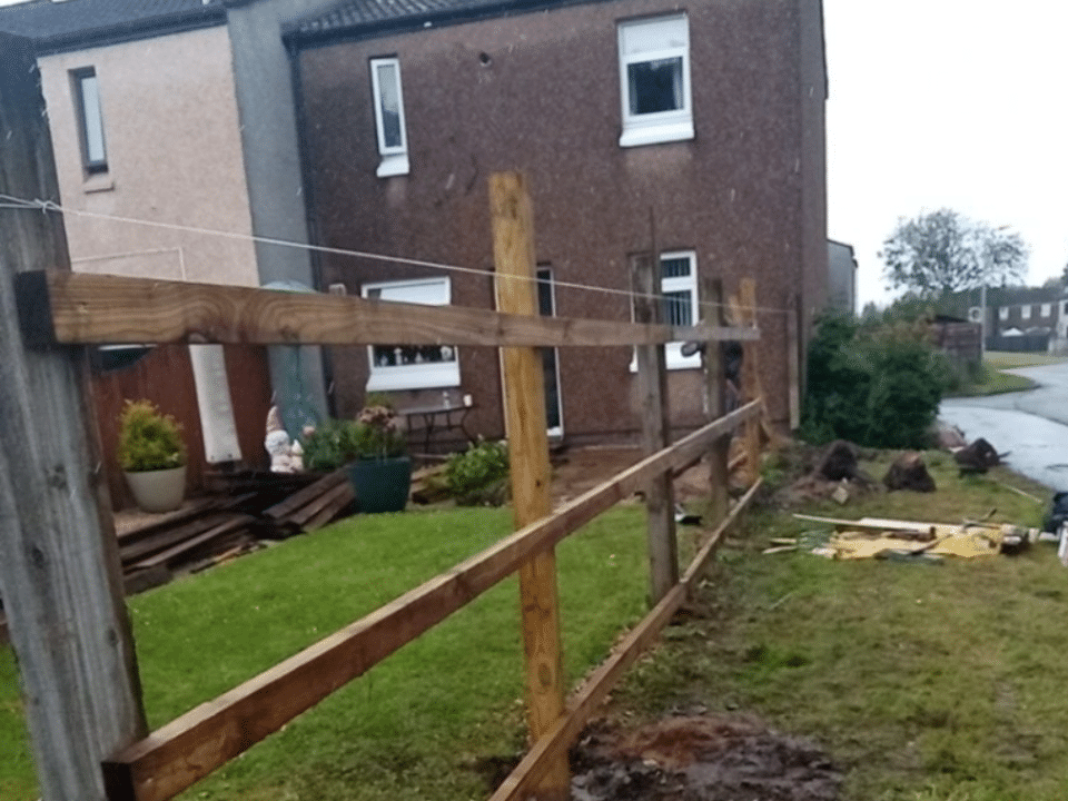 Alec and his team saved a fence which had been damaged in the storms. He was able to put 10 new posts in the fence to stabilise it. This meant we didn’t have to completely replace the fence which would have been more costly